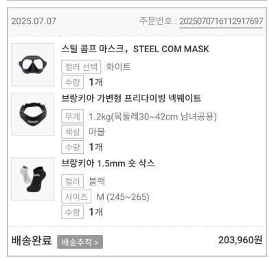 마스크 +스노클+오리발