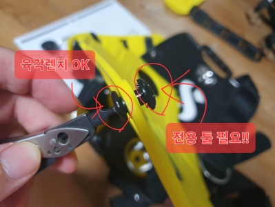 전용 교체 툴이 없으면 뭐 어쩌라는건지 모르겠네요. 교체 할 수 있게 전용 툴을 좀 끼워서 주던가, 아니면 아예 일반적인 툴로(하다못해 육각렌치나 별렌치 정도만으로라도) 나사를 풀...